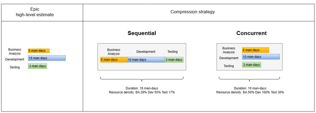 Compression is used to manage risk and choose between slow and rapid styles of execution. Compression is implemented on epic level and defines if epic activities will be done sequentially or concurrently.